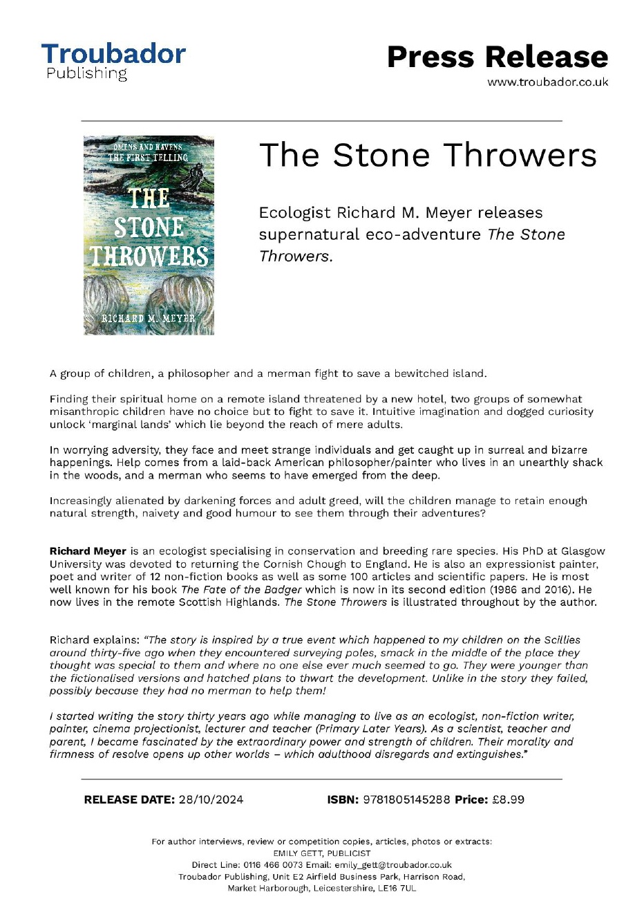 The Stone Throwers is, I reckon, it’s sixth or seventh title. It took me ages to find the right one, let alone the opening passage: something, we’re told, is all-